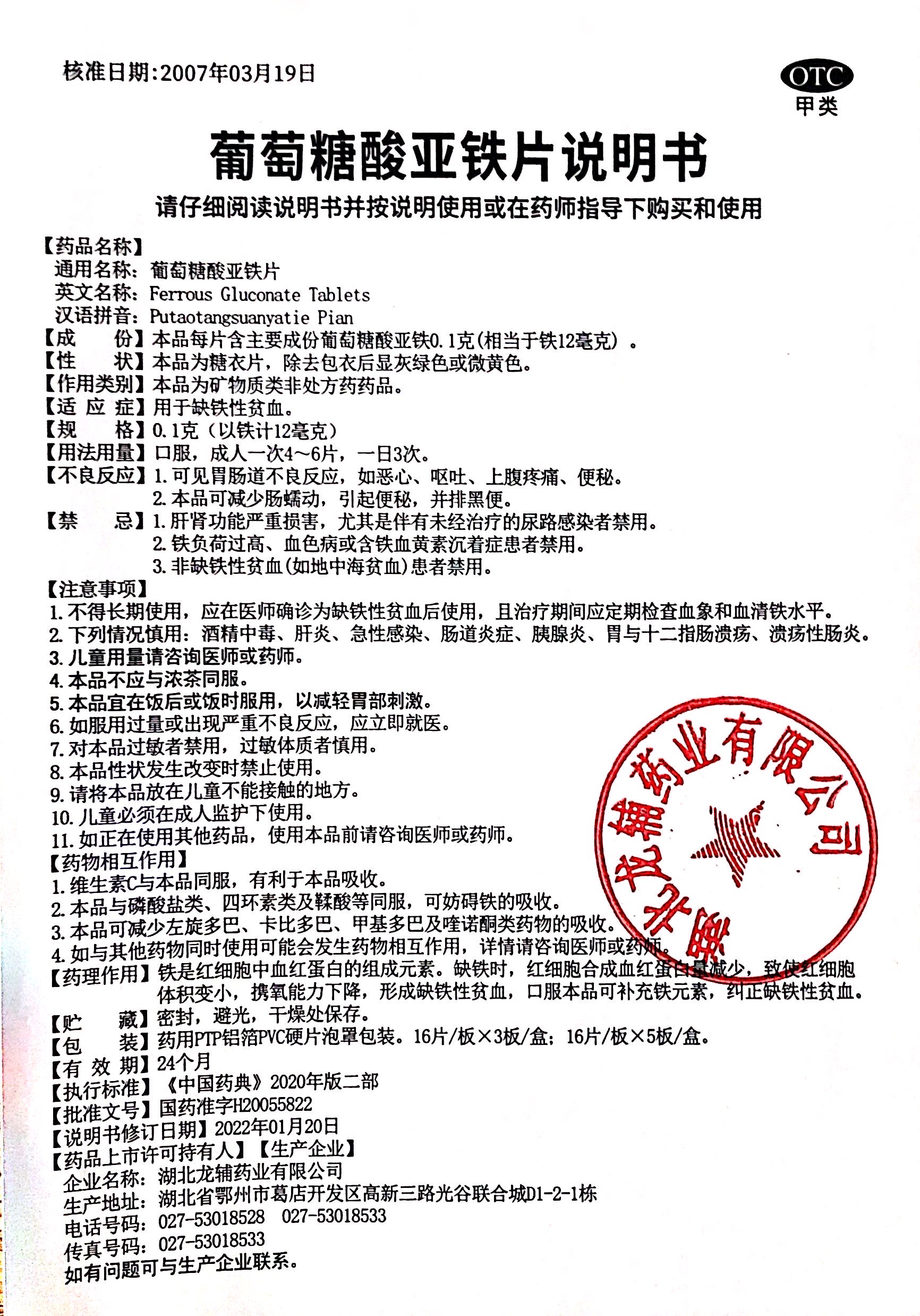 考慮到兒童、孕婦等特殊人群在不同階段對鐵劑的用藥需求和劑量的把控,湖北龍輔藥業(yè)有限公司生產(chǎn)的0.1g/片(以鐵計12毫克)正好滿足這一需求。